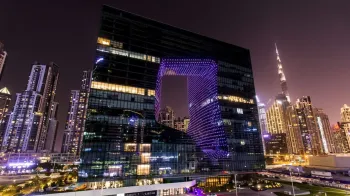 Opus by Omniyat is one of Dubai’s most recognisable buildings, a sculptural cube carved by a dramatic void and illuminated by a constantly shifting LED light show. Set in the heart of Business Bay, just minutes from Downtown Dubai and Dubai Mall, it places residents at the crossroads of business, culture and nightlife. The district’s canal promenades, hotels and offices create an energetic, city-based lifestyle that appeals to professionals and international buyers alike.